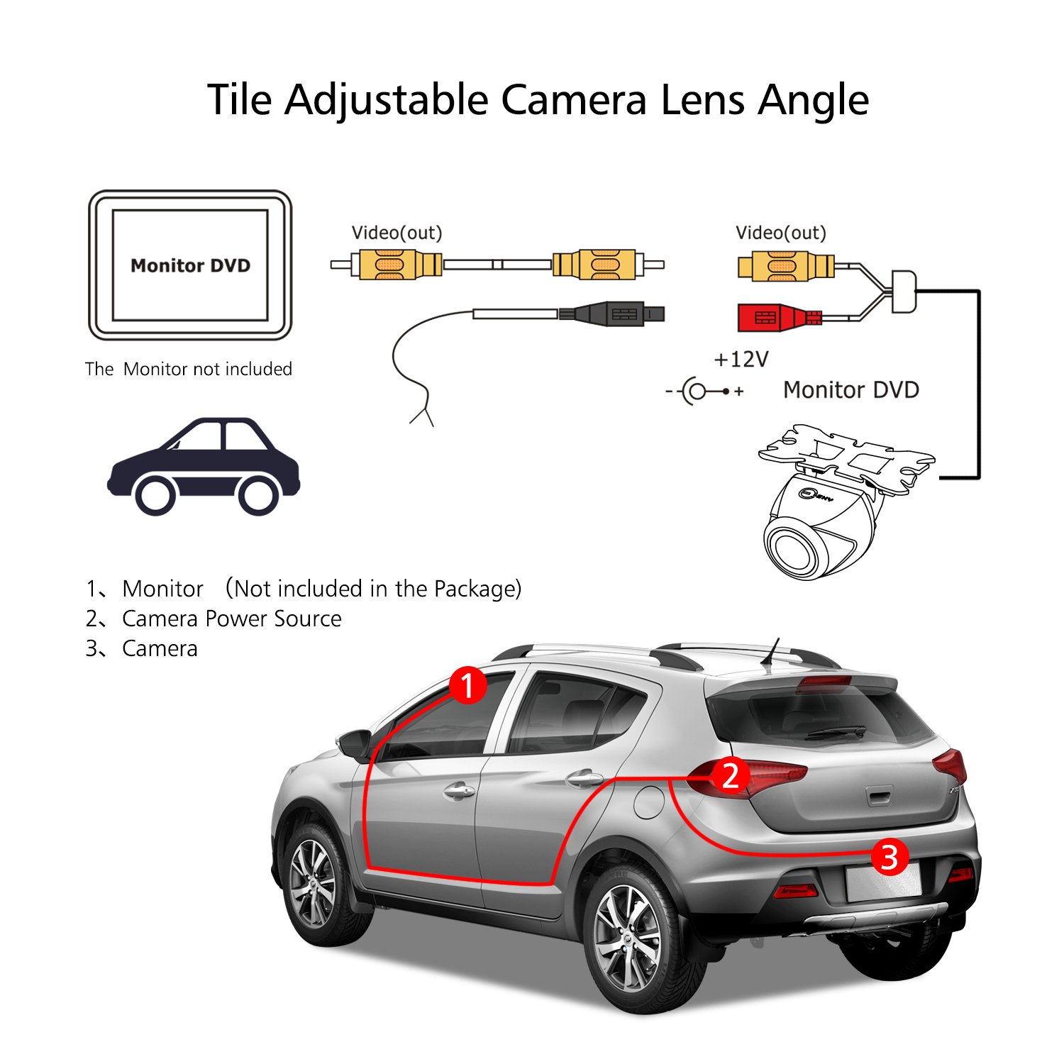 Esky Reverse Camera of solid design with polished surface, stainless and stylish. Professional exterior weather-resistant and waterproof, dustproof, moisture proof. Better still, it can tolerate extreme temperatures between -58°F and 176°F